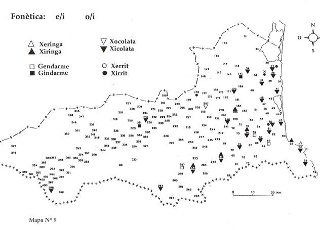 Les fluctuacions rauen, al nostre parer, en les condicions de recolliment de les dades de Sacaze. El nostre mapa palesa el fort posicionament de la /i/ a tota la plana rossellonesa.