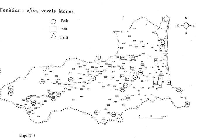 Les fluctuacions rauen, al nostre parer, en les condicions de recolliment de les dades de Sacaze. El nostre mapa palesa el fort posicionament de la /i/ a tota la plana rossellonesa.