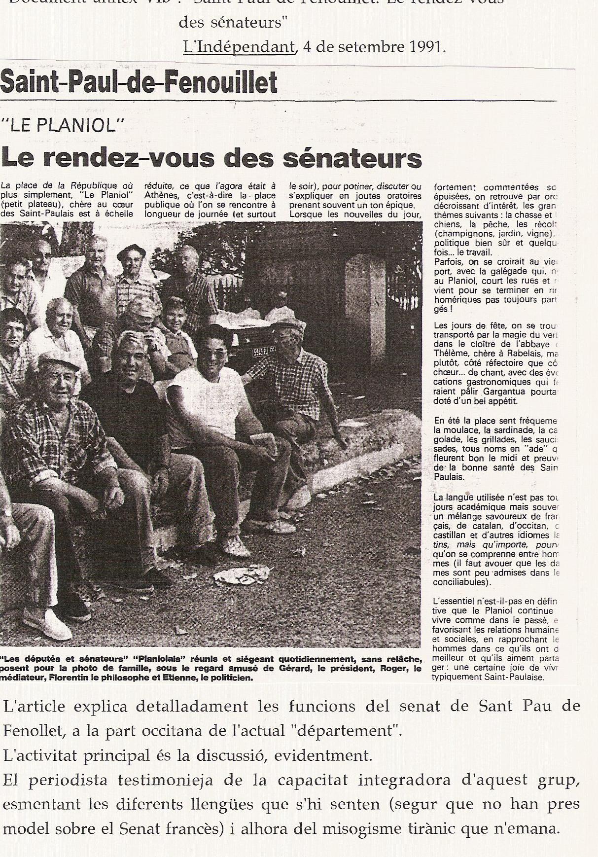 L'article explica detalladament les funcions del senat de Sant Pau de Fenollet, a la part occitana de l'actual "département".
