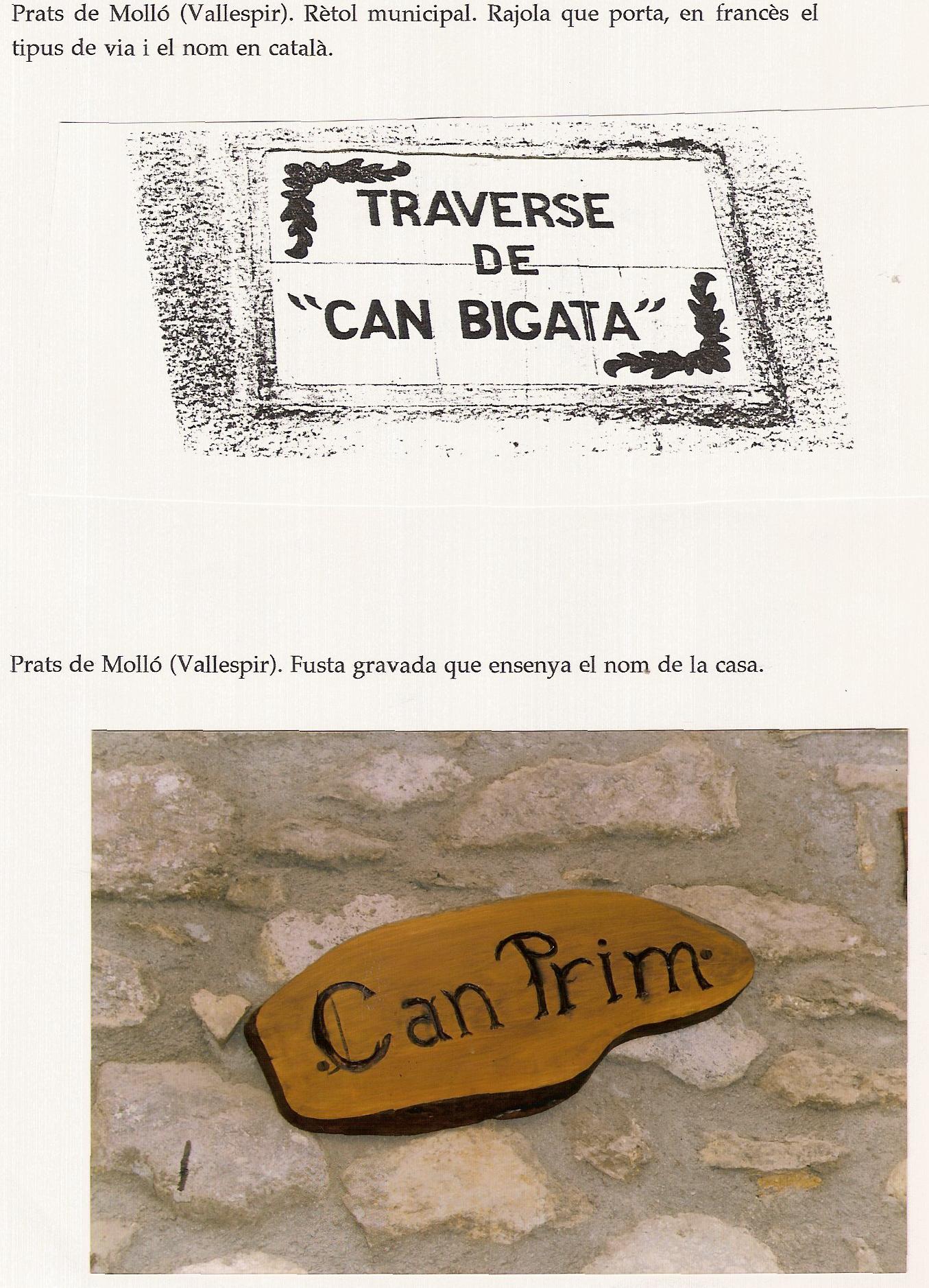 Il·lustrem els dos temes amb uns rètols de Prats de Molló.