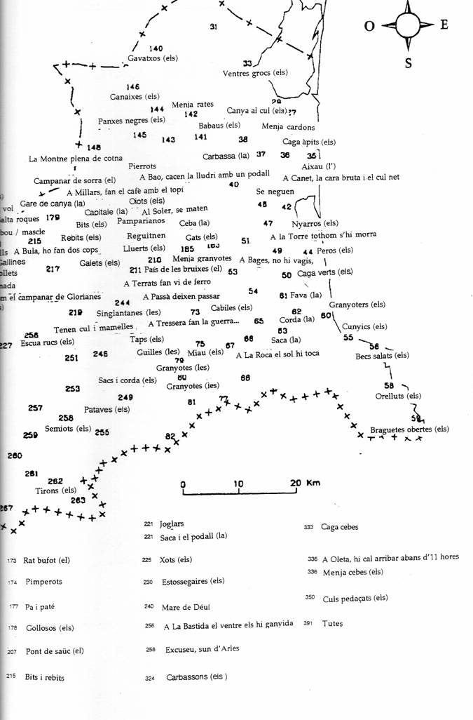 Fins i tot, referències que semblen objectives a priori (orientació geogràfica, economia..) tan bon punt passen pel prisme del sociocentrisme, es converteixen en imatges totèmiques infamants. Figures que podrien portar una valoració laudativa (els millors llegums per exemple, pensant en La Fava o El Nap) amaguen una intenció injuriosa, ultratjosa.