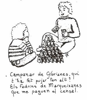 Cita una cançoneta que acompanya la construcció de castells de cartes:
