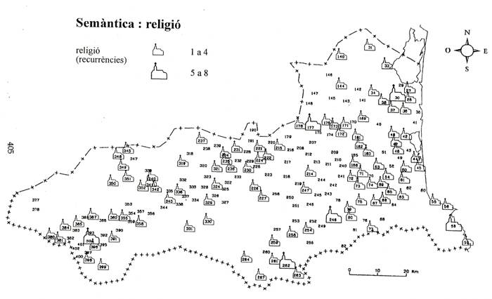 Del mapa n°33 de la repartició dels malnoms relatius a la religió a tot el territori nord-català, la Salanca i la Marenda es destaquen. Ens preguntem: s'ha d'interpretar com un testimoniatge d'una vida religiosa intensa? o bé d'un esperit anti-clerical molt accentuat? El cas de la Salanca és conegut per haver nodrit violentes lluites intestines de caràcter politico-religiós; els malnoms no deuen ser aliens a aquest estat d'ànima.