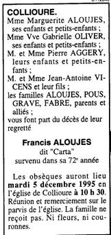 "Les surnoms ça sortait des usines, des ateliers. Des gens baptisaient les autres. Il fallait peu de chose. Par exemple, 'Penjarola', il s'appelait Mercier, hi havia quelcom de penjat que li havia caigut dessús. I diu "què és aqueixa penjarola?"".