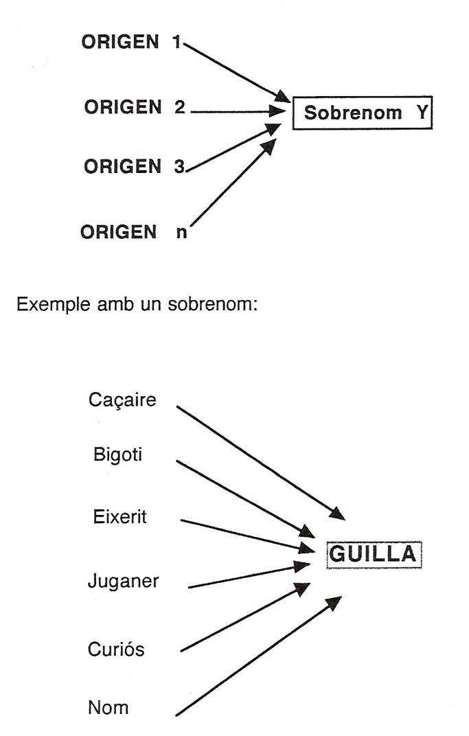 En volem per prova un esquema que evidencia els riscos d'equivocació. Diversos orígens han engendrat sobrenoms idèntics, el que fa impossible la formulació d'una norma comuna.